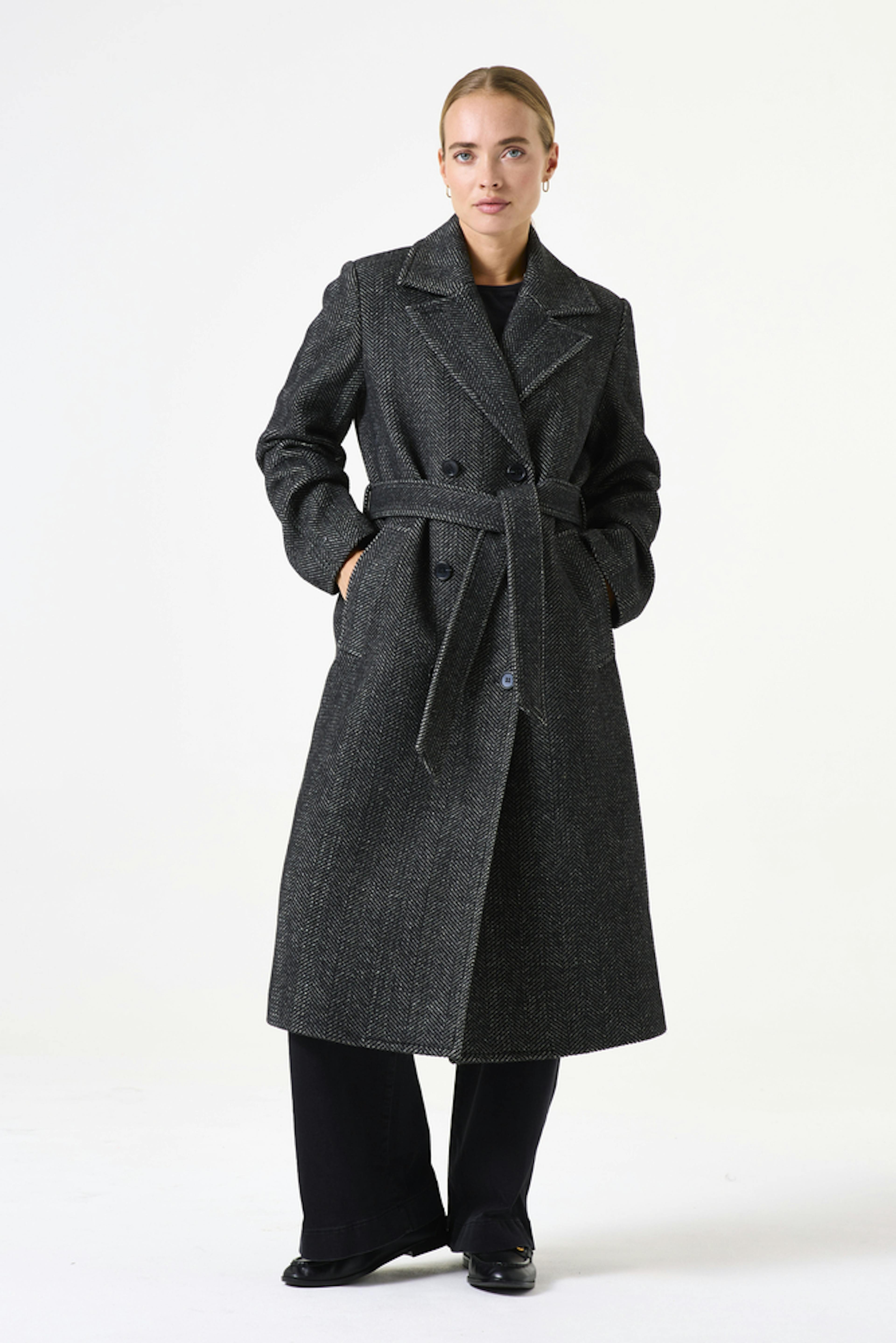 Schwarzer Fischgrätmantel